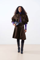 Denna bomberjacka har en avtagbar krage med volangkanter, dragkedja, långa vida ärmar och flera fickor.
