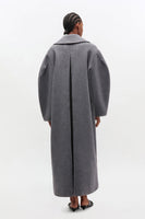 Gorgeous wool coat with tailored, oversized look. Size 34 fits sizes 38–42. 76% recycled wool, 19% polyester, 4% cashmere, 1% nylon.