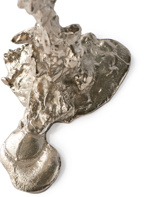 The Drip Candle Holder by POLSPOTTEN, designed by Pascal Smelik, is a sculptural object that brings form and balance to any interior. Made from 100% recycled plated aluminium, it has a substantial weight that gives it a steady presence, while the fluid silhouette reflects the designer’s interest in organic and irregular shapes.
