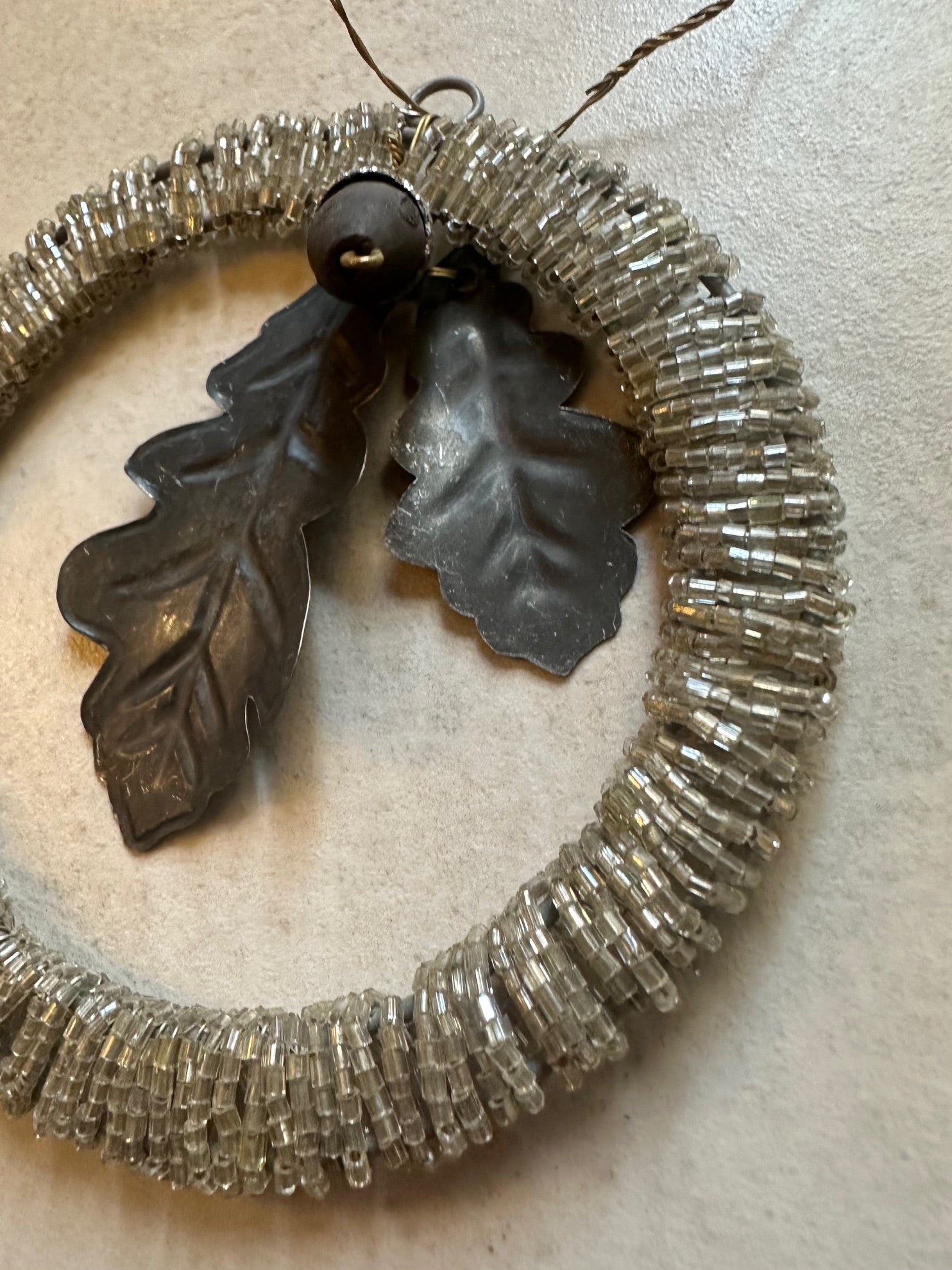 Handgjorda jul decorationer imed ett metall löv & glaspärlor från Walter & Co