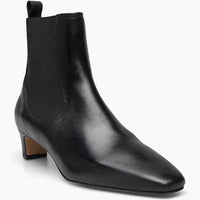 Style reference description: sleek ankle boot with 4cm heel and sharp square toe