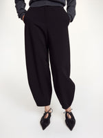 By Malene Birger Carlien trousers tailored to a barrel silhouette with pressed creases. They have a high waist, belt loops, side pockets, and a hook and zipper fastening. Style them with a classic shirt for a modern take on office wear.